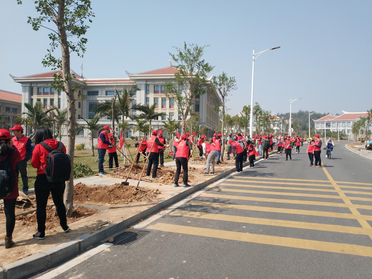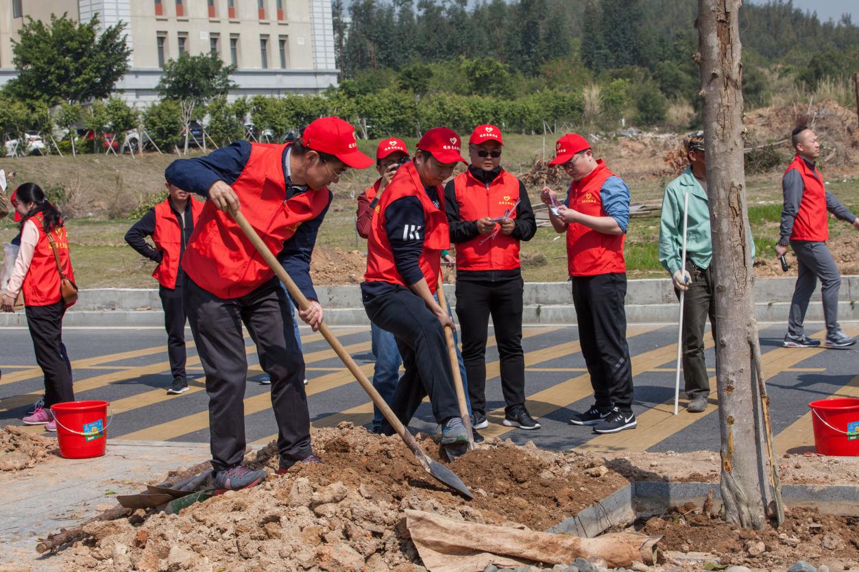 上午10点,在简短的仪式之后,活动在校区主楼群5号楼西侧长700多米、宽100米的植树现场展开,场面壮观。组织者认真安排,大家穿上志愿衣,戴上小红帽,撸起袖子,挥锨挖土,掘坑载苗,干的热火朝天。校区后勤绿化的师傅们也在现场认真指导。挖坑、运苗、栽植等程序有条不紊,按照规范方式栽下一棵棵树苗。随后,大家将寄语写在 “心愿卡”上,系在树上。看着新生的绿意和迎风飘扬的卡片,校园里充满着青春活力的笑声。大家表示,植树造林功在当代、利在千秋。此次活动以植树绿化为载体,进一步增强了环保意识,为把厦门建设成为绿树成荫的生态线、环境优美的风景线、彰显特色的形象线作出贡献。