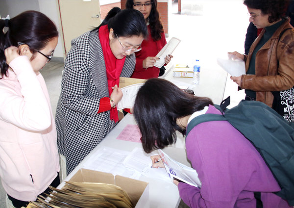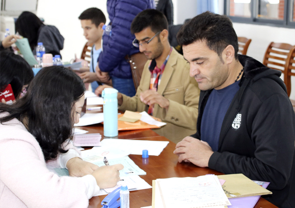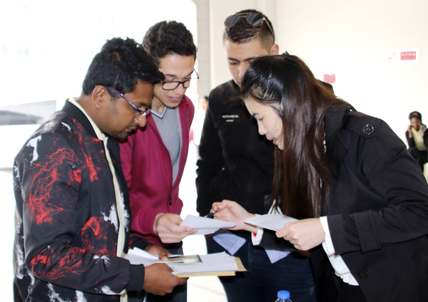 2月25日,海外教育学院/国际学院的60余名中外学生志愿者早早来到学院迎新注册点,根据安排分布在各岗位上,为来自25个国家和地区的105位新生提供行李寄存、资料填写、翻译、指引、接机等服务。