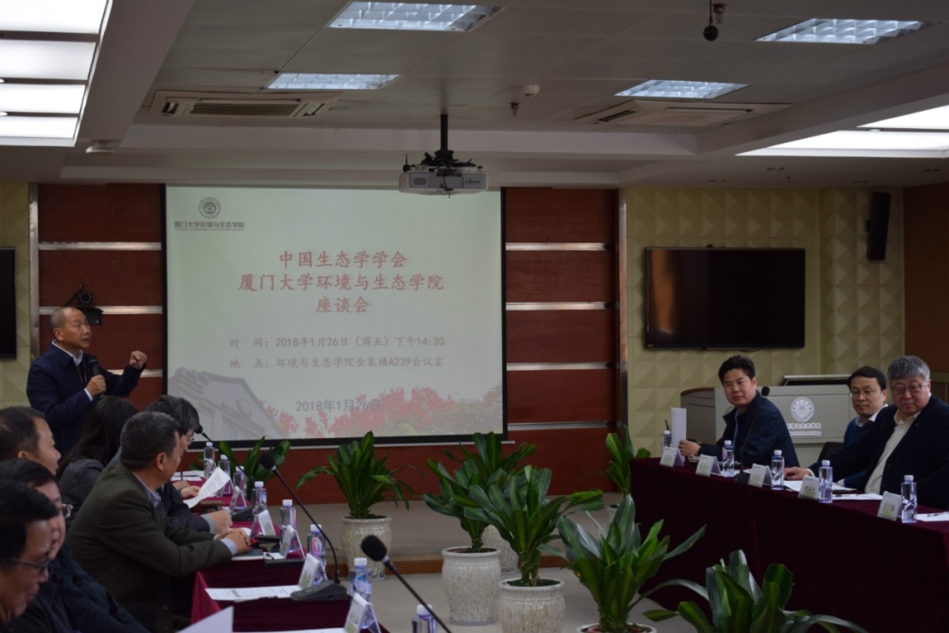 在厦门大学寒假务虚会后第一天,2018年1月26日下午,环境与生态学院为推动“双一流”学科建设,加强与中国各高校、科研院所之间的交流与沟通,专门邀请中国生态学学会莅临学院指导学科建设。