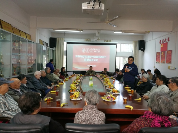 ?xml:namespace>2018年1月20日,在学期即将结束,春节即将来临之际,海外教育学院/国际学院在思明校区离退休处二楼会议室召开了离退休教职工迎新春茶话会。30位离退休教职工、学院党政领导王艺、陶涛、黄冠华,工会主席刘强,院办主任黄琛及其他工会委员等四十余人参加了座谈。