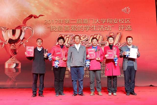2017年12月31日,“我最喜爱的学生活动”颁奖典礼于“2018•青春之夜”新年舞会上隆重举行。颁奖前通过视频回顾了活动的举办历程,展示获奖活动风采,给现场观众留下了深刻印象。校长助理、翔安校区党工委书记、管委会主任陈光老师为获奖学院颁奖,学生处副处长、翔安校区学生办主任张清榕老师为获奖校级学生组织颁奖。