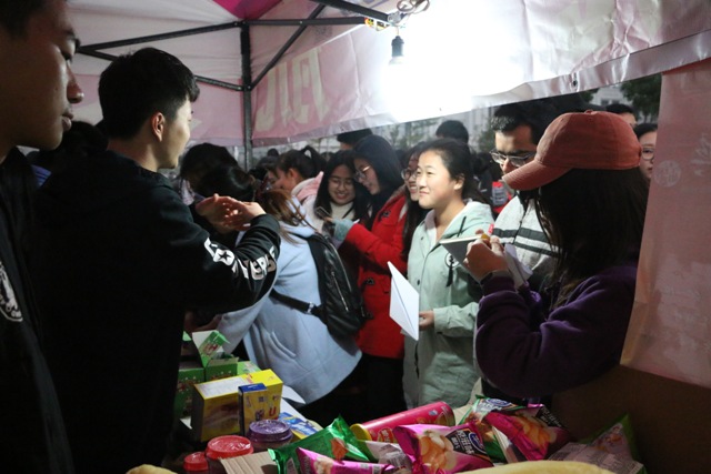 跳蚤市场则提供各类物美价廉的学习用品,生活用品以及回收的二手闲置物品,带领同学们在新的一年里继续低碳环保。美食乐园里儿时的回忆大白兔,老北京特色冰糖葫芦,老天津蜜麻花和散发芬芳气味的鲜花饼给身处异乡的人儿丝丝甜意。