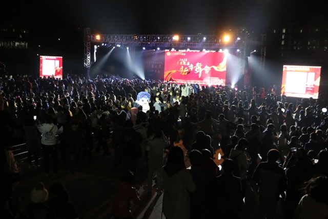 晚会过程中,现场观众还通过舞台两边的大屏幕进行现场互动,“上墙”留言表达祝福,参与激动人心的抽奖。在互动环节中,邀请来自乌克兰的同学教授Zumba舞,“兔子舞”将晚会推向高潮。此外,主办方还贴心地为全场师生免费提供热姜茶和热水,希望在寒冷的夜里给大家带来些许温暖。