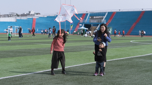 除了主赛场的放飞角逐赛外,副场的亲子活动也同样趣味十足。主办方为前来游玩的小朋友和父母们提供了免费的空白风筝和颜料,让他们在现场制作风筝的过程中体验美好的亲子时光。同时,游戏区也是热闹非凡,风筝知识竞赛、你画我猜、套圈等游戏让同学们玩得不亦乐乎!