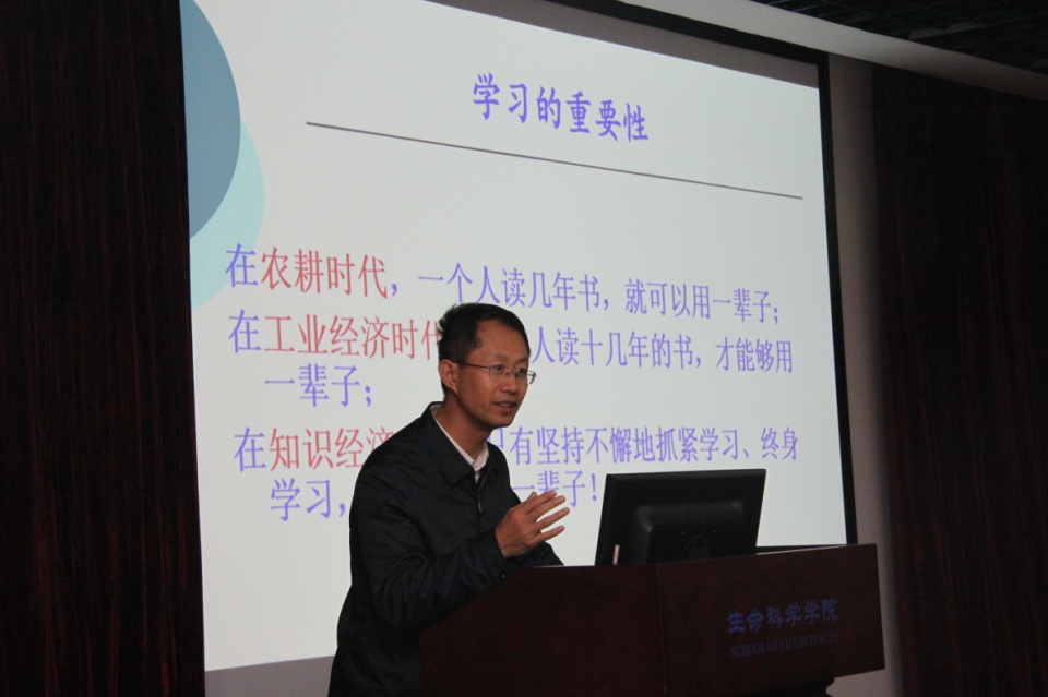 12月19日下午14:30,生命科学学院于黄朝阳楼五楼报告厅开展第四次政治理论学习,本次理论学习邀请到马克思主义学院副院长张艳涛教授做题为“‘四个伟大’与中国崛起——党的十九大精神解读”的报告。学院全体教职工及学生党员共240余人参加了本次学习,学习会由学院党委书记张明智主持。