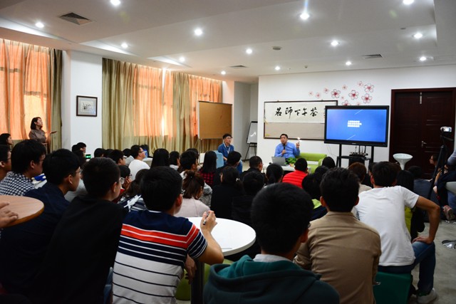 下午2:30,伴随着热烈的掌声,活动正式开始。邹教授以“不忘初心”开始个人演讲,点明人是营利组织,要学会感恩和接受帮助。接着,通过解析空间、时间和人物命名法指出,传播能力决定人生道路。随后,邹教授又以求职简历和面试为例,说明做好传播的关键是要站在受众的角度来考虑问题,根据公司企业文化和运营模式采取更精准的传播策略才能脱颖而出。
