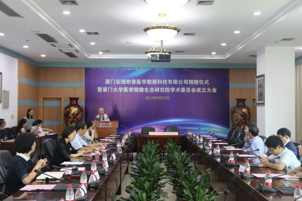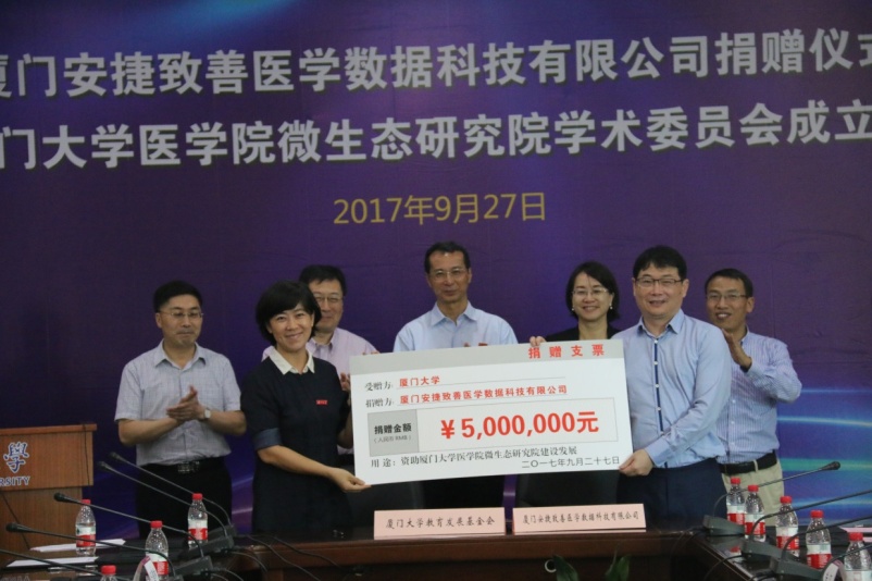 9月27日,厦门安捷致善医学数据科技有限公司捐赠仪式暨厦门大学医学院微生态研究院学术委员会成立大会在厦门大学隆重召开。会上宣布,厦门大学医学院微生态研究院学术委员会正式成立。同时,厦门安捷致善医学数据科技有限公司向该研究院捐赠500万元,将用于资助微生态研究院的建设发展。