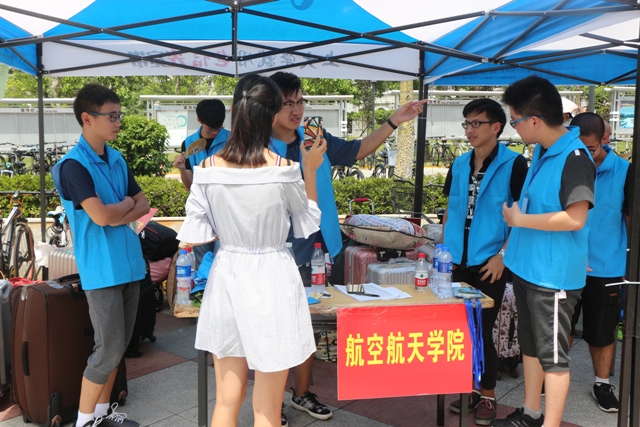 在这场全员参与的迎新工作中,志愿者是一抹靓丽的风景。迎新公共志愿者分别从翔安校区乘车点、行李点、交通引导、秩序维持、机动保障等方面开展工作,各学院的迎新志愿者也都热情迎接学弟学妹们的到来,采取一站式服务,为新生报到入住带来极大便利。校级学生机构值班点亦是尽心尽力为大家服务。所有志愿者积极投入到迎新工作中,各司其职,各尽其力。