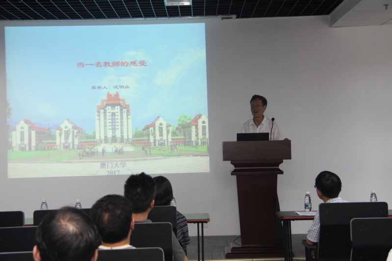 接下来,和蔼可亲的国家级教学名师沈明山老师以《当一名教师的感受》为题,分享了自己不同时期对教师这一职业的感悟及在师德师风建设、本科教学内容定位和教学方法等方面的经验。他强调,当教师要以不求名、不求利,把学生成才作为最好回报的心态,去关爱学生;要做一个“育人”的好教师,而不是做一个单纯的教书匠。