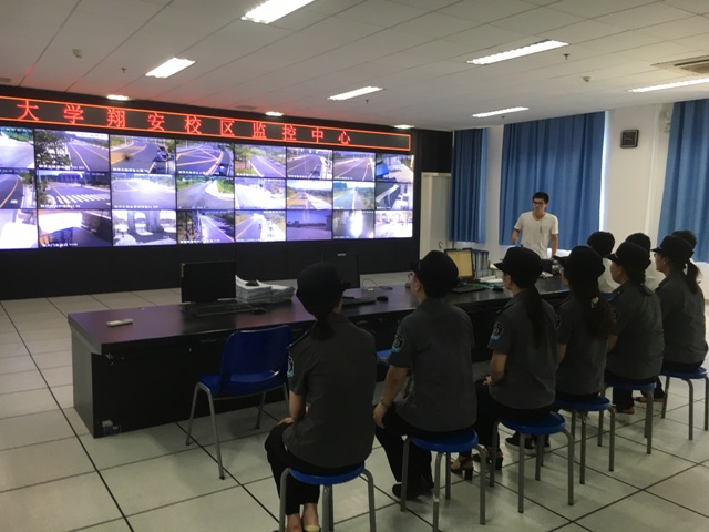 保卫办干部首先回顾了校区近几年的视频监控运行情况,介绍了校区内监控设备、各设备的功能及操作方式和流程,提出对监控室工作人员的工作要求,并让监控分控室队员在校区监控中心内一同工作和学习。
