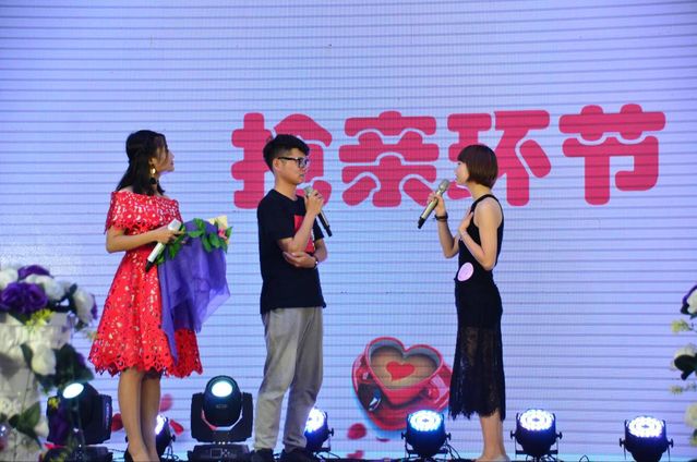 活动开始后,首先是活力四射的开场舞表演,随后10位美丽动人的女嘉宾闪亮登场。在经历了前几位男嘉宾的全场灭灯后,最后一位男嘉宾通过自己精心的准备以及多才多艺的表现,在心之中决选环节获得两位女嘉宾的留灯,最后成功牵手一位女嘉宾。活动在最后抢亲环节进入高潮,从思明校区远道而来的两位同学在抢亲环节勇敢对场上的女嘉宾告白,最后成功抢亲,分别成功牵手一位女嘉宾,并向台下观众洒下幸福的喜糖。交友联谊活动在热烈的气氛中落下帷幕,赖丹凤老师在活动过程中积极为男女嘉宾出谋划策,并鼓励男嘉宾大胆地展示自己。活动过程中,现场设置了三次互动抽奖环节,幸运观众可随机获得一份好礼。