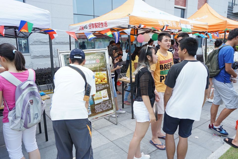 13:00,开幕式启动。在泰国同学们富有国家特色的开场表演过后,文化风情展与国际美食“疯”会在各国的摊位上展开。同学们陆续到帐篷前领取美食券,或细细品尝美食,或驻足文化展板前。香港的美食充满了港式茶餐厅的风味,将人带到香港的大街小巷;来自南强书苑的厨师们精心准备了各色中华小吃,现场排起了长长的队伍;土耳其的同学放着他们国家的音乐,一边发放美食一边“摇摆”;泰式酸辣汤飘香四溢,味蕾直呼过瘾;尼日利亚的同学讲解美食的做法,介绍国家的风土人情,大受欢迎;地道的印度咖喱独特浓烈,“无咖喱不成席”的风气感染了所有人;日本饭团曾是日本战国时代士兵行军打仗时的干粮,讲究的做法引得众人围观;印度尼西亚同学讲述着香料调味的做法,让大家啧啧称奇;而几位中国同学制作的家乡小吃,亦是让人眼前一亮。
