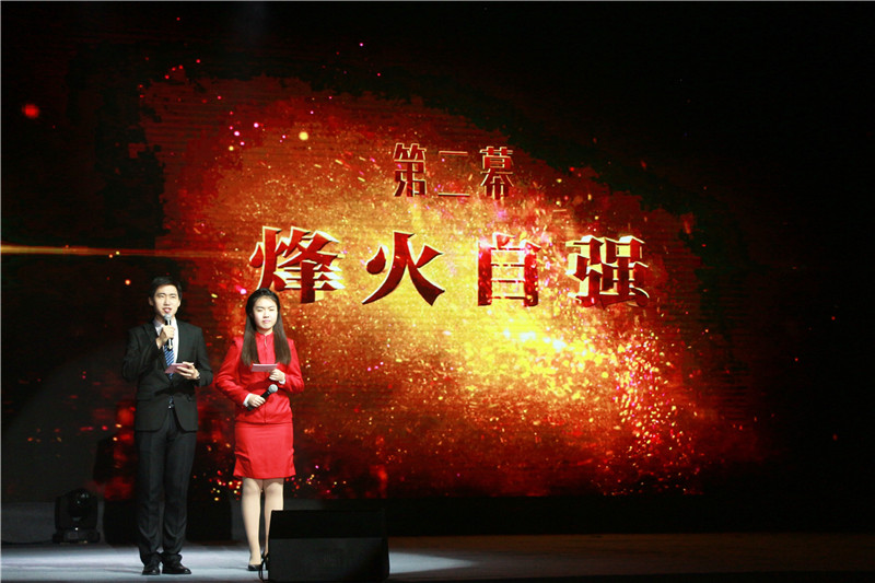 第二篇章《烽火自强》演绎了抗战年代厦大师生艰苦办学的故事。“不到最后一刻,绝不放弃质量与技能的培训”《烽火情抒》体现了萨本栋校长为将厦门大学建设成南方之强所做出的贡献。南强学子的热血豪情通过《红旗颂》感染了观众,现场气氛高涨。
