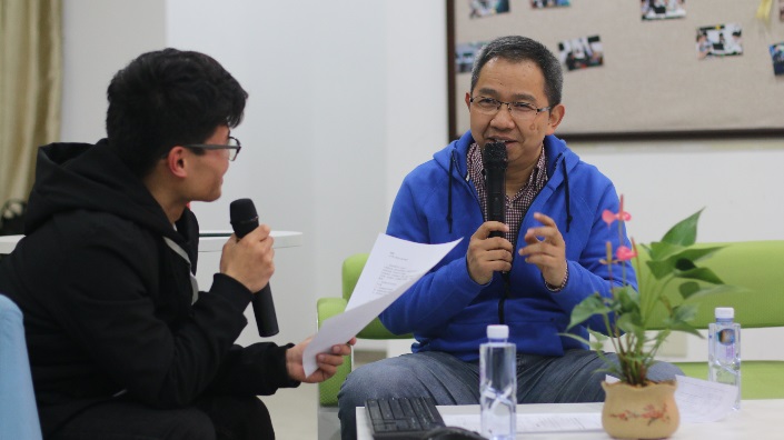 在互动提问环节,杨先生详细解答同学们提出的问题。对于创业,他认为现在国家稳步发展、鼓励创业创新,是创业的好时机,他说:“要敢想,年轻就是要有梦想!”。关于创业素质,杨银芬先生分享了自己当年在华中科技大学读书时,给舍友买了三年早餐的故事,总结了自己的一个感悟:做人只要不怕吃亏,一定会有人愿意帮助你。同时,他也谈到每个人的特点不一样,所以适合的道路选择也不一样,有的人适合钻研学术,不是每个人都适合创业。