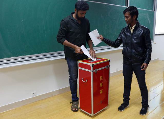 此次换届投票共有16名学生竞选。竞选者横跨了13、14、15、16各个年级。候选人一一上台介绍了自己的基本情况和意向的竞选职位。针对不同部门,竞选者对未来的工作计划侃侃而谈,如生活纪律部候选人NEHA打算制定宿舍公约来共同维护宿舍卫生,为MBBS的学习和生活提供良好的环境。体育部候选人RAMSHA建议设立瑜伽、足球和篮球队,学术部候选人HARDIK建议成立学习小组,帮助同学们共同学习。竞选者或娓娓道来,或慷慨激昂,现场气氛热烈,不时在学生代表中掀起阵阵欢呼。