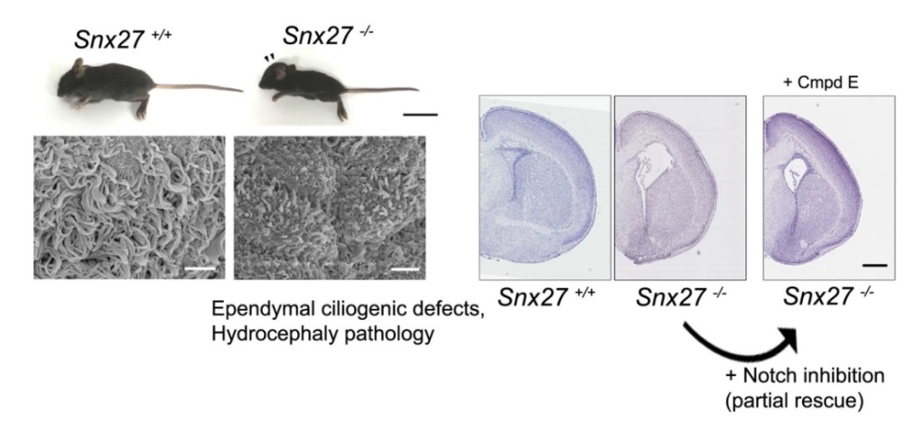 SNX27缺失导致小鼠脑积水表型,γ-分泌酶/NOTCH抑制剂逆转脑积水发展