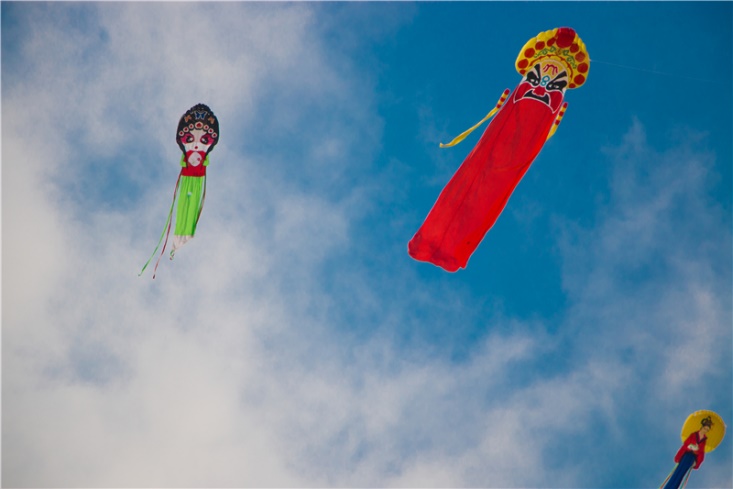 开场表演过后,风筝放飞角逐赛正式开始。一百多只风筝陆续飞向天空。有的风筝飞得高而远,仿佛要消失在云层之外;也有的不尽人意,或迟迟不肯起飞,或与其他风筝交织缠绕,或挣脱束缚不知所踪······