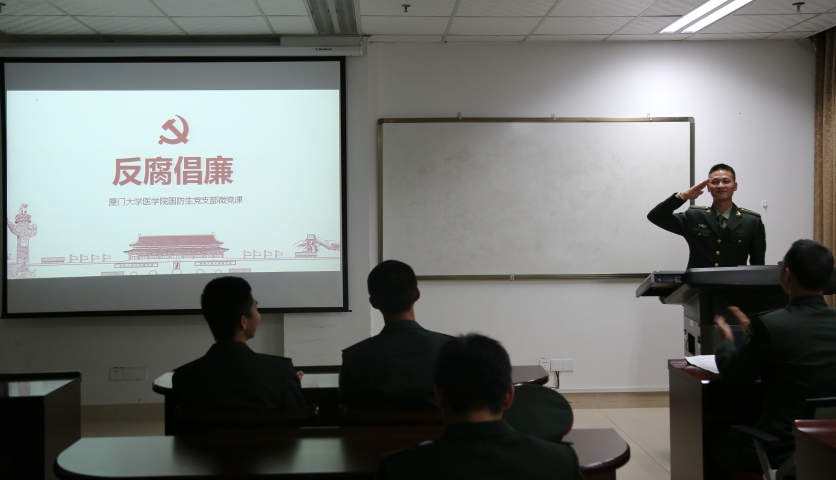 11月26日晚,医学院国防生党支部联合海洋与地球学院国防生党支部,于翔安校区希平楼开展主题为“深入贯彻落实十八届六中全会精神,扎实推进‘两学一做’学习教育”第四专题组织生活会。