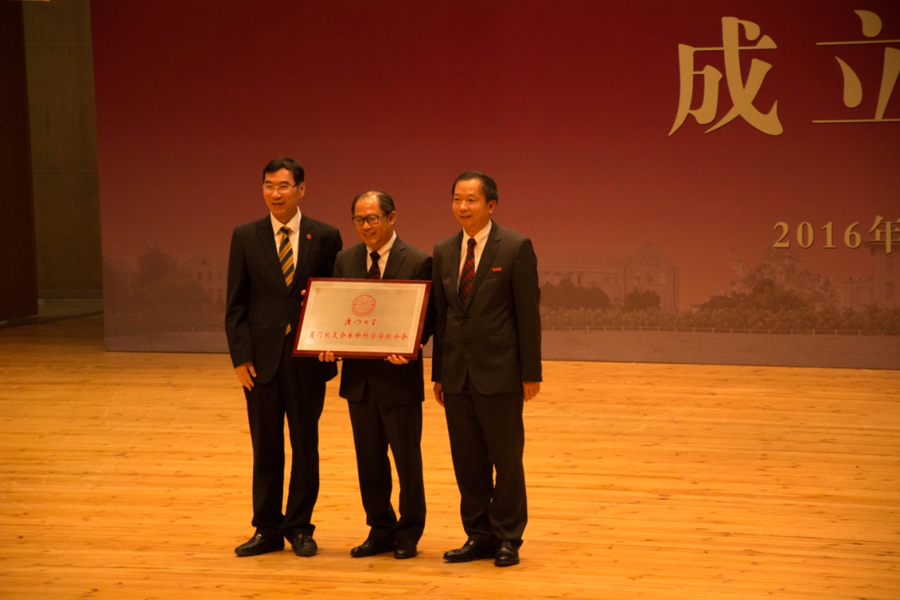 曾国斌秘书长、陈光书记向首任会长翁师德授予厦门大学厦门校友会生命科学学院分会会牌。翁师德发表就职演说,感谢各级领导、校友的充分信任。他表示将认真履职,进一步健全分会校友网络,开展丰富多彩的活动,搭建资源分享平台,凝聚校友力量,助力母院发展。他宣读了首届分会顾问名单,并向顾问所作的贡献表示感谢。