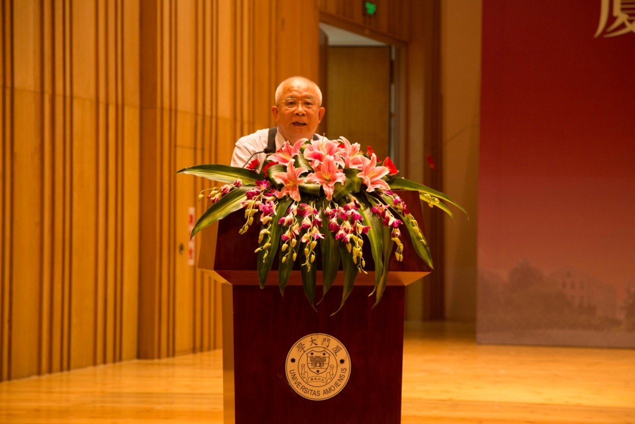 韩家淮副校长代表厦门大学行政班子对学院分会的成立表示祝贺。他指出一流的校友工作已成为世界一流大学的共同特征,重视校友工作也已成为高校寻求发展的增长点、提升自身办学实力的共识。他邀请广大校友周末方便的时候带家人一起到美丽的翔安校区参观访问,希望学院分会成为学院与广大校友联系沟通的桥梁、纽带和平台,积极发挥作用,为校友服务,为社会多做贡献,共同谱写厦门大学“双一流”建设的宏伟篇章。