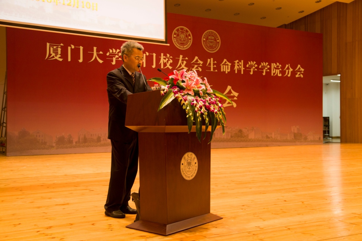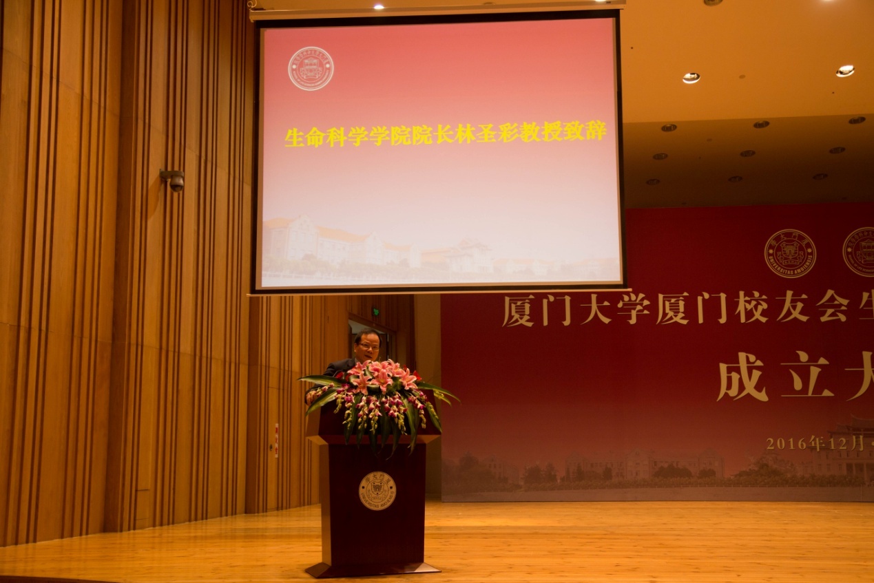 生命科学学院院长林圣彩教授发表了富有个性、闪耀智慧光芒的致辞。他汇报了学院94年来走过的艰辛而又辉煌的历程。他指出,在建设世界一流学院的征程中,校友的力量不可或缺,校友的关心、支持和参与至关重要。希望各位校友加强与学院的联系,常回母校和学院走一走、看一看,再忆读书岁月,畅叙师生深情,共谋学院发展。