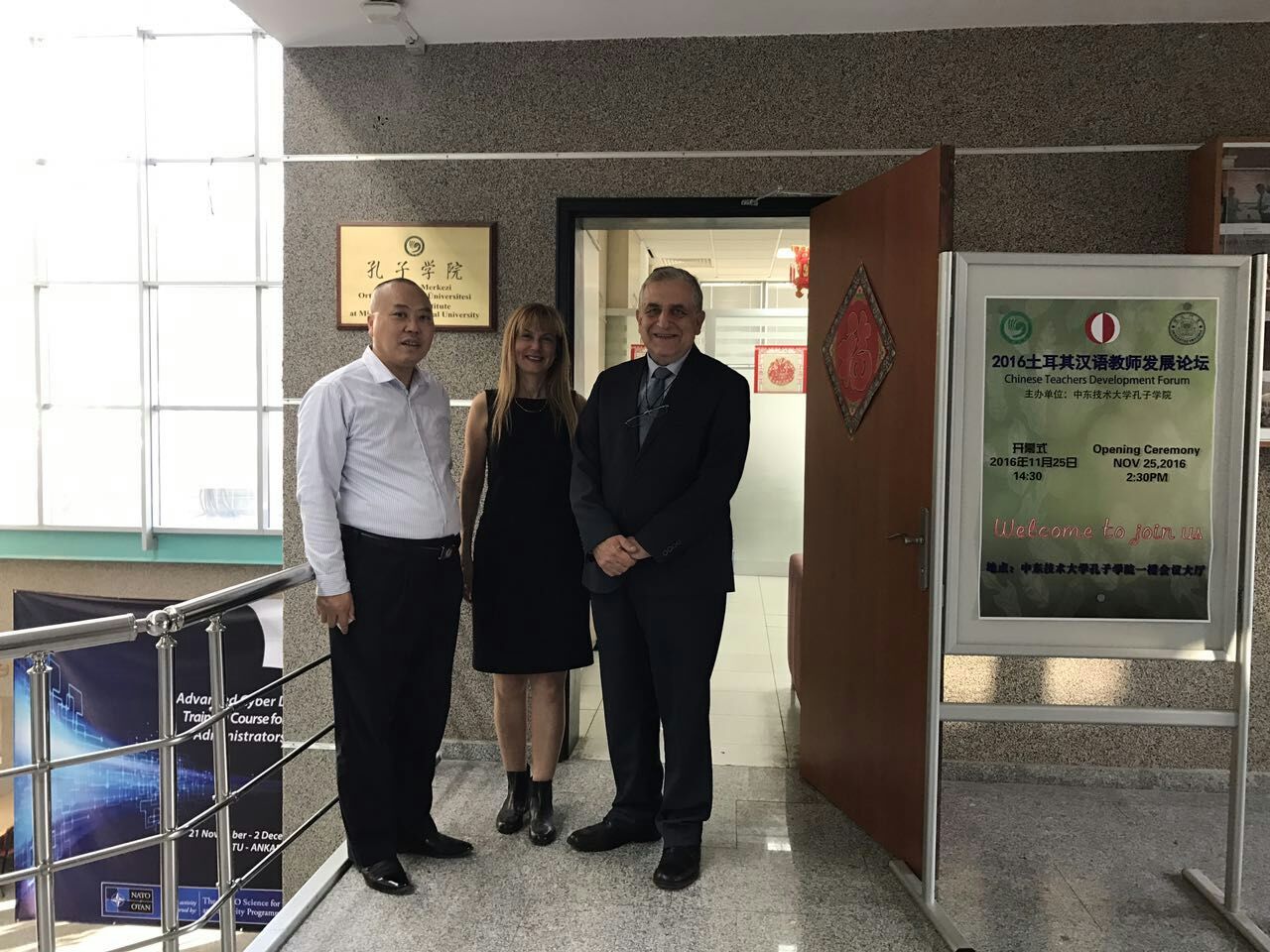 11月26日下午中东技术大学孔子学院的奠基人之一,土耳其前驻华大使拉菲特·安古纳先生一行两人轻车简行访问孔子学院,孔子学院中方院长杜云热情招待了先生一行,并将近期我院工作取得的进展向拉菲特·安古纳先生做了简单的介绍,在了解了孔子学院这些年从起步到发展壮大取得的成就之后,先生由衷的感慨“我老了,但是孔院却愈发年轻了”。