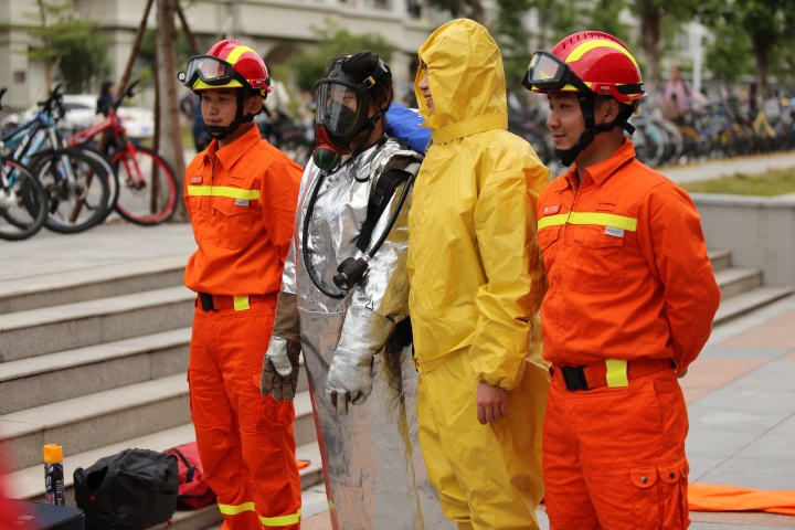 11月30日和12月1日,保卫办与翔安区消防大队开展联合宣传行动,分别在校区丰庭餐厅广场、竞丰餐厅广场举行大型消防宣传活动。翔安区消防大队向校区师生免费发放消防宣传材料,新店消防中队现场展示消防云梯车、特种设备消防车等消防车辆,以及消防服、破拆器、液压钳、逃生绳索等消防器材,并邀请校区师生员工试穿防火服、登上云梯车体验高空救援,组织100多名师生正确使用干粉灭火器扑灭初起火灾。现场师生互动积极,效果显著。