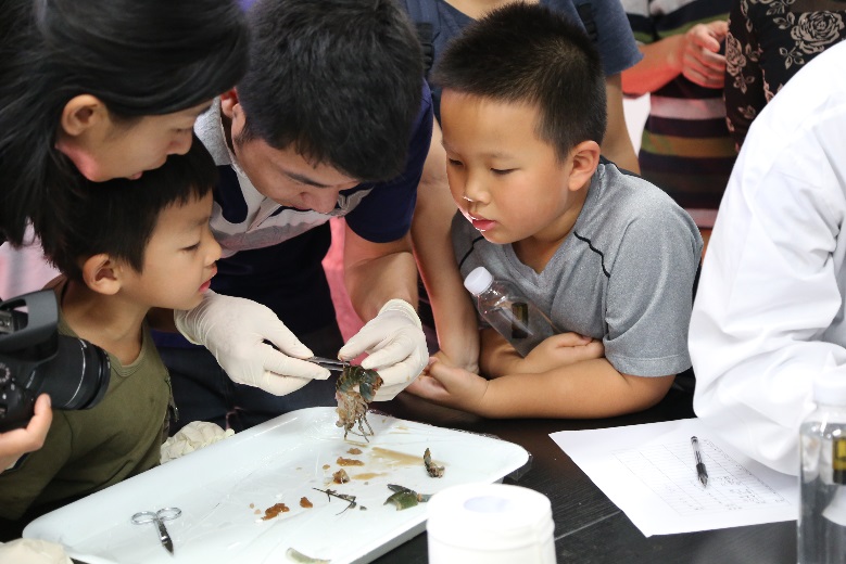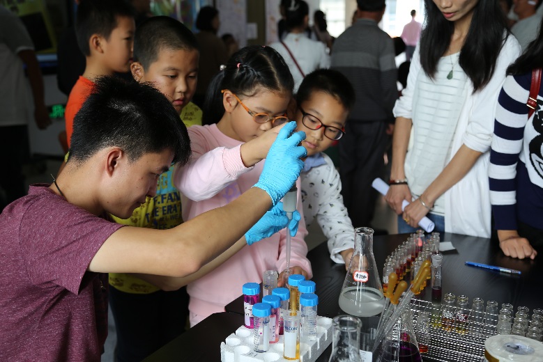 美丽的小丑鱼、水母和珊瑚吸引了大批小观众的注意;多个实验室展示了螺、贝、鱼、虾、蟹、棘皮动物等常见海洋生物的标本和活体,利用转基因技术演示观赏鱼荧光蛋白注射,并定时开设螯虾解剖实验操作课程,我们同时还展示海洋濒危物种的现状,介绍海漂垃圾的危害,引导人们关注过度捕捞,倡议关注厦门湾的白海豚、文昌鱼和无人岛;为公众提供可持续的海鲜消费指南和食用建议,宣传增殖放流的意义,介绍滨海湿地生态系统及相关生态修复知识,倡导人们在实际生活中爱护海洋、保护生态环境。