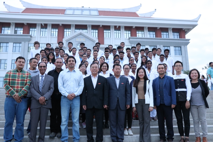 激昂的校歌声中,医学院2016级MBBS留学生开学典礼落下帷幕。