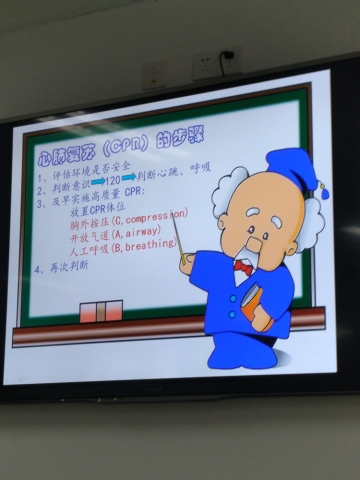 午两点半培训准时开始,整个培训主要由PPT讲解、观看录像、实践演练和操作及理论考试四个部分组成。培训开始前,陈竞萌老师首先对培训重要性、培训内容和形式做了简要的介绍。她强调了安全意识和掌握基本急救知识对进行野外采样等工作的同学的重要性,并提出此次活动的实质就是希望同学们都能得到专业的急救知识培训,由此具备一定的急救技能,关键时刻既能救己也能救他人。
