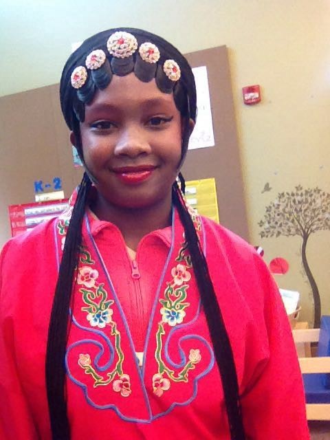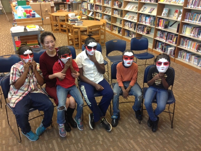 我改变了“说”的教学习惯,干嘛要下个定义告诉学生“那叫什么”,为什么不让他们自己感悟 “那是什么“。我和学生一起欣赏京剧《三岔口》,一起来玩“我来比划,你来猜”;一起表演中国皮影戏,在光与影的交错中,无声的“对白”;一起创作京剧脸谱,让他们有了与众不同的万圣节装备;一起舞动12米长绸在风中翩翩起舞;一起制作中国汉字象形文字故事图书;一起在纸上剪出了12生肖的故事。。。