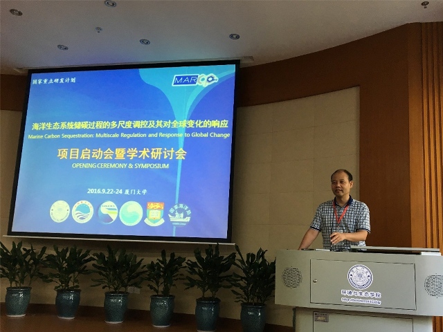 2016年9月23-24日,由厦门大学黄邦钦教授主持的国家重点研发计划“全球变化及应对”重点专项项目“海洋生态系统储碳过程的多尺度调控及其对全球变化的响应”启动会暨学术研讨会在厦门大学翔安校区成功召开。科技部高技术研究发展中心张峰处长,项目专家组成员唐启升院士、戴民汉教授、余克服教授,特邀同行专家蒋国平教授、齐义泉教授、李炎教授,厦门大学科技处周涵韬副处长(主持工作),环境与生态学院沈小平书记等出席了会议。项目承担单位中国海洋大学、中国科学院广州地球化学研究所、中国科学院南海海洋研究所、香港大学、国家海洋局第三海洋研究所以及厦门大学等课题负责人和学术骨干80余人参加了会议。