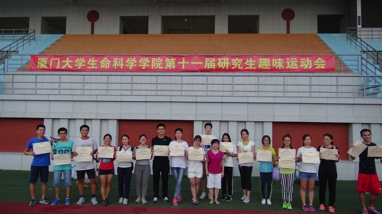 为了倡导大家在繁重的学习、实验之余重视体育锻炼,同时促进2016级研究生新生尽快熟悉班级,给同学们提供更多的交流机会,更好的融入班级、学院这个大家庭中,9月25日下午,生科院在翔安校区田径场成功举办第十一届研究生趣味运动会。