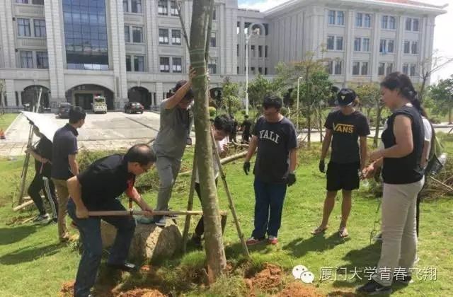 在学校和翔安校区党工委、管委会的坚强领导下,广大师生员工齐心协力,共同参与灾后校园修复及重建工作。树虽倒下,人永屹立,厦大精神在风雨历练中愈加绽放光芒。