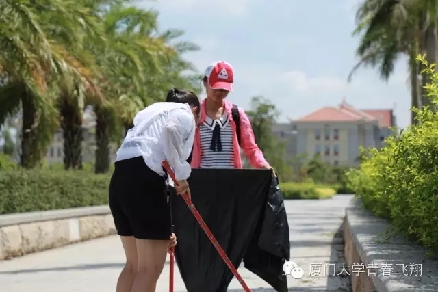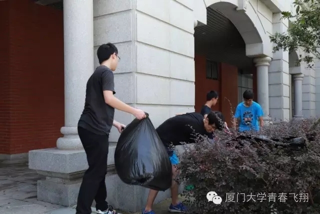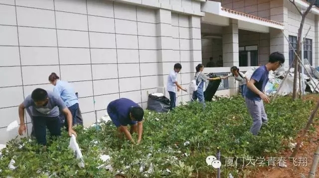 翔安校区的新成员——航空航天学院也积极行动起来。159名2016级新生于17日上午,协助清扫一期食堂周边、游泳馆到图书馆沿路、图书馆正门、游泳馆到一期公寓沿路及东门附近区域,同学们还齐心协力铺好了足球场的草皮。