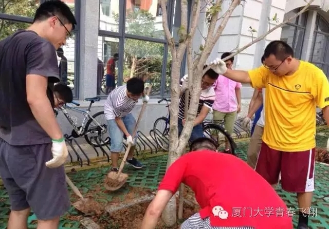 医学院发出志愿者招募通知后不久就有200多名学生报名。同学们扶起被风刮倒的自行车、自动售货机,帮助学校后勤部门打扫路面、清除障碍,协助学院物业和老师们清理积水、收拾残余。值得一提的是,国防生们在园林工作人员的精心指导下扶正树苗。而这一批树苗正是医学院2011级国防生于校区建设之初(2012年)在此处种下的。4年前,它们在这里落地生根;4年后,它们经历风雨,仍笔直坚挺。他们用自己的实际行动展现厦大医学院国防生的优良传统。