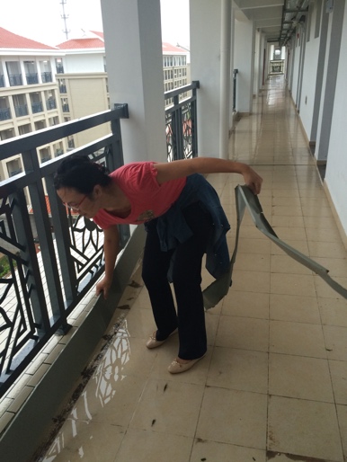 台风过后,学工口的老师们立即投入灾后自救工作。学生办张清榕主任亲自冒雨带领学生自愿者将被吹落楼下的顶盖抬到天台盖住采光口,避免大雨直接浇灌进活动中心,自己却浑身湿透;生命科学学院组织学生志愿者及植物专业的老师抓紧抢救周边倒伏的树木;医学院的国防生队伍灾后第一时间参与公共区域的清理;公共卫生学院组织学生在公寓园区开展灾后消杀防疫工作,重点在下水道、楼梯间及人流密集位置喷洒消毒药剂;海洋与地球学院学工组想方设法让学生相互借用手机给家里报平安,避免学生家长可能因通讯中断与学生失联引起恐慌,同时还组织学生党员先锋队加入恢复重建工作;作为校区的新成员,航空航天学院院楼虽然尚未落成,但还是动员2016级新生159人协助清扫食堂、游泳馆、图书馆、正大门、东门等公共区域,协助铺好了足球场人工草皮;能源学院充分发挥学生党员在抗灾救灾中“主心骨”的作用,哪里有灾情,哪里就有他们的身影,用实际行动诠释了合格党员的标准;药学院组织学生互相帮助,共享有限的水源,重植受损的“校友林”,将被吹落的天花板改造成一个房屋模型,以“莫兰蒂”命名,作为今后安全教育的鲜活教材;少数民族预科班的同学也组织起来,与学生办、公寓办助理一道清理被风雨冲击过的学生办事大厅、心理咨询中心……