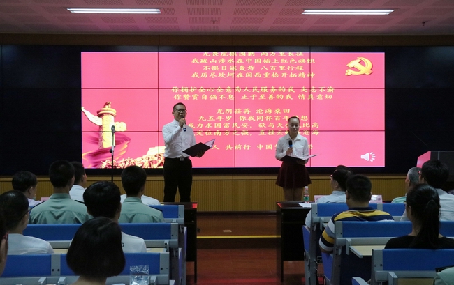 在题为《革命之光,生命之火》的微党课中,国防生党支部成员刘琼为大家还原了福建省第一个党支部建立者罗扬才的英勇就义的壮烈义举。而后再由罗杨才引申到当前奔赴一线抢险救灾,保家卫国的中国军人,歌颂了千千万万的共产党人用行动和生命诠释的革命精神。