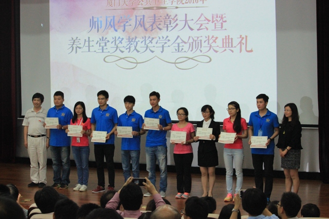 5月20日晚,公共卫生学院在厦门大学翔安校区图书馆报告厅召开2016年师风学风表彰大会暨养生堂系列奖教奖学金颁发仪式。全院师生、实习基地及带教单位代表等近600人参加大会。