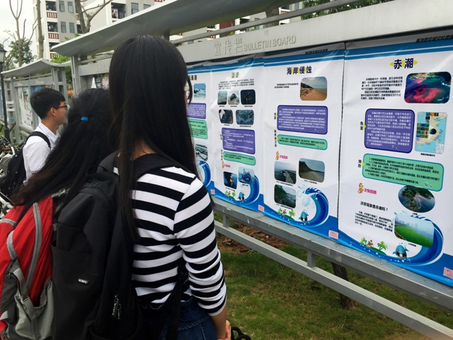 5月12日 上午,海洋防灾减灾宣传海报在翔安校区海报栏展出。我国是一个海洋灾害频发的国家,以风暴潮、海浪、海冰和赤潮等灾害为主,海岸侵蚀、海水入侵与土壤盐渍 化、咸潮入侵等灾害也有不同程度发生。此外,我国还存在发生海啸灾害的潜在风险。因自然的或人为的因素,这些海洋灾害对国民经济发展和人民的生命财产构成 巨大的威胁。志愿者向来往的同学们做了详细讲解,切实提高了学生的防灾减灾意识。