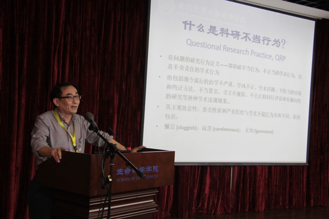 紧接着韩院士谈到了科研不端行为:“科研不端行为,是故意的学术欺诈、抄袭、剽窃等。尤其是抄袭,有的人违背科学态度,刻意的追求利益,抄袭剽窃别人的成果,或许偶尔的不小心,大家就会抄袭。如何避免抄袭呢?只要是自己写的东西,自己真正知道自己在写什么,自己可以理解的东西,写出来的肯定和别人不一样,也就不存在抄袭了。”韩院士以科研不端行为向大家揭示了这种不端行为并不是极端的一步,而是一个渐变性的过程,由于无数次的失误、无意的积累,无心失误变成有意违规,无意变成故意,形成了适应性。