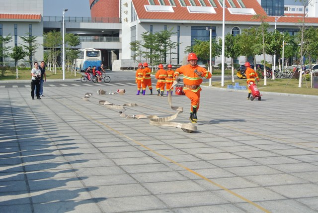 比赛开始之前,翔安校区保卫办主任涂建芳发表讲话,他强调了消防工作的重要性,并肯定了安防队员的工作成绩。接着后勤集团副总经理陈有亮发言,他指出掌握消防常识是安防员的基本技能,通过比拼相互学习、切磋技术,掌握灭火器材的使用方法,增强消防安全意识,提高灭火自救的能力,共同创建平安和谐的校园环境。