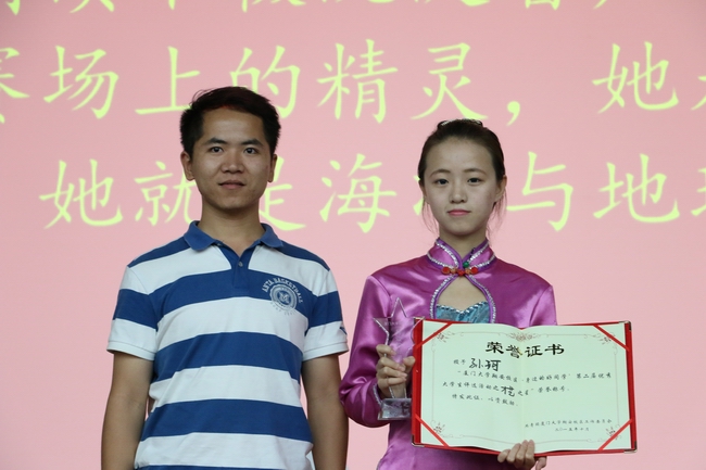才艺之星——孙珂,她是名副其实的舞蹈艺术特长生,舞姿翩翩,她积极参加了院级、校级的才艺活动,学院迎新晚会、歌王赛、诗歌朗诵、合唱表演、夏令营晚会上等十几场文艺表演。