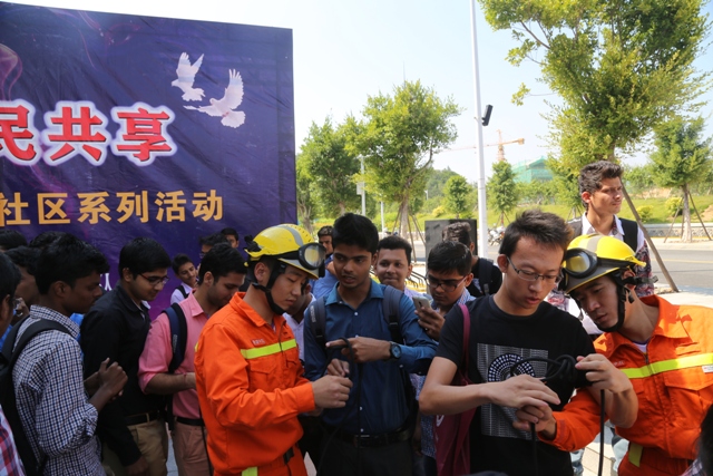 学习消防知识,保障校园安全。10月14日中午,医学院师生在翔安校区丰庭餐厅门口举行了消防安全演习活动。医学院教职工代表、2015级全体新生、MBBS留学生、各班安全委员300多人参加了本次活动。活动得到了翔安校区保卫办的大力支持。