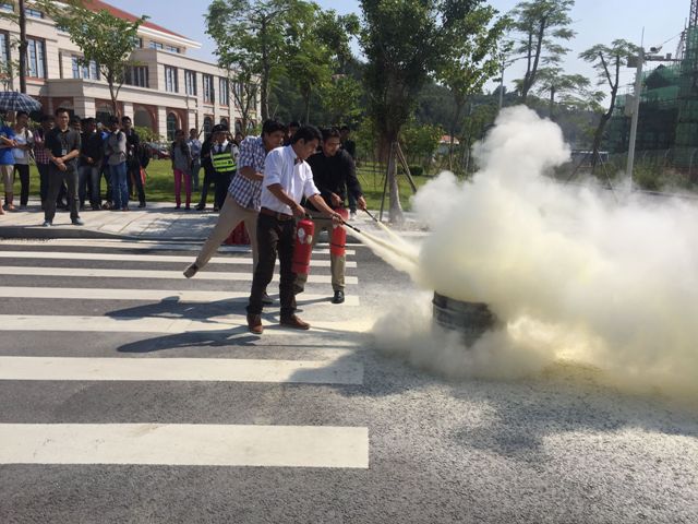 演习前,翔安校区保卫办和翔安区消防部队官兵给现场师生进行了安全培训。消防官兵首先进行防火和逃生技能的讲解,并示范如何使用逃生绳、灭火器等工具。随后,参与师生在工作人员的指导下,亲身实践了如何使用干粉灭火器进行灭火。安全委员赵同学表示:“这是我人生第一次参加安全演习,第一次使用灭火器,活动非常有实用性和实际意义!”
