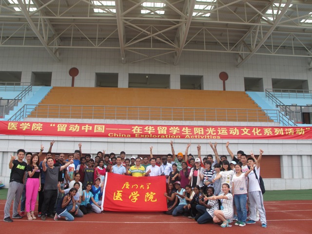 5月16日上午9:00,由厦门大学医学院主办的“留动中国——在华留学生阳光运动文化系列活动”开幕式暨Super Task比赛在翔安校区一期田径场顺利举行。医学院副院长齐忠权、党委副书记马龙、外教David、团委副书记陈国渊、辅导员谢婷玉和程芬与百余名中外学生一同参加了开幕式。