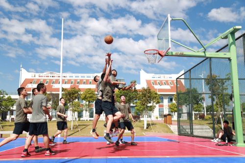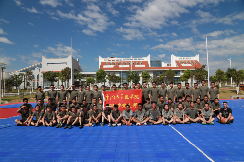 4月6日上午,翔安校区一期篮球场上跃动着一群矫健的身影,由我校医学院国防生党支部组织的“迎校庆新老生篮球赛”正在这里火热上演。这些军中豪情男儿们个个神采奕奕,斗志昂扬,以饱满的精神状态与母校共庆94周岁生日。