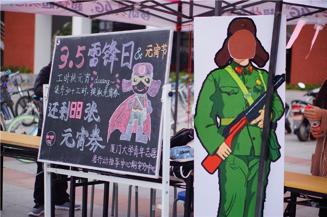 今年的学雷锋日适逢元宵佳节,为了让同学们在感受节日气氛的同时,体会到志愿服务与雷锋精神的重要性,厦门大学青年志愿者行动指导中心翔安校区分中心开展了“工时换元宵”,以及“灯谜竞猜”等活动。