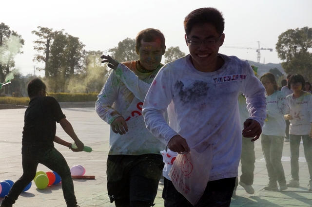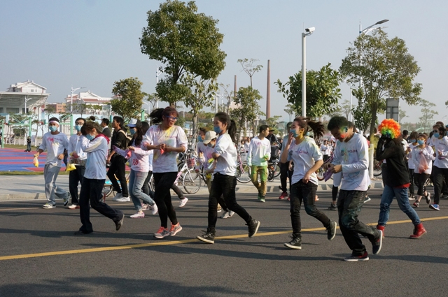 尽管已是深冬,厦大师生们的参与热情并不输给寒冷的天气,思明校区的学生也不厌路途遥远来到翔安校区。报名参加人数共538人,其中翔安校区350多人,思明校区180多人,加上80名工作人员以及中途加入的观众,整个活动有600多人。大家互相抛洒由玉米粉做成的无毒彩色粉,沿着地图上指定的路线环校跑,现场气氛热烈高涨。