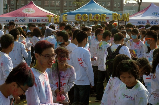 活动宣布结束后,参赛者们还没有离去,在现场拍照合影留念。甚至一位在白色的T恤用彩粉写上“幸福”的同学表示,“感觉4公里太短了”,“一路跑着一点都不累,它(指彩跑)把娱乐和运动结合起来,把一件累的事变成High的。”另一位同学说:“感觉很开心,跟所有人都能玩,没有隔阂感。” 而一位没能参与到彩跑中的观众认为这项活动非常有趣,给同学们的生活增添了色彩与欢乐,表示下一次也会参加。